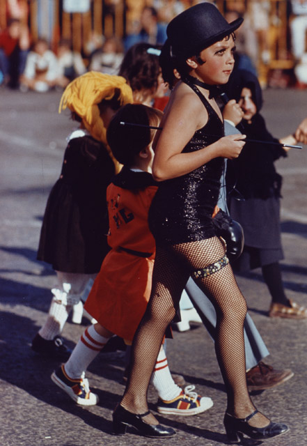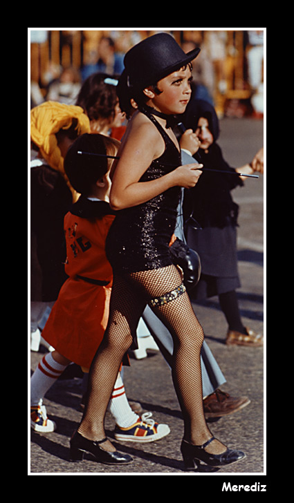 Comentario: Esta es una de las fotografías más queridas por su autor, ya que el disfraz representa a Liza Minelli en la película Cabaret (estrenada en 1.972), que constituyó uno de los films más brillantes de aquella época, con una fotografía espectacular. En ésta hemos mejorado el color, el contraste y el enfoque, y al mismo tiempo se ha acudido a un recorte vertical, para destacar más el centro de atención.