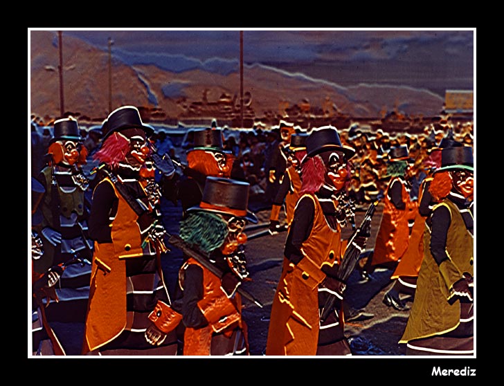 Comentario: Es esta fotografía, muy significativa de los carnavales, además de las mejoras generales de color y enfoque, se ha optado por un encuadre cuadrado.