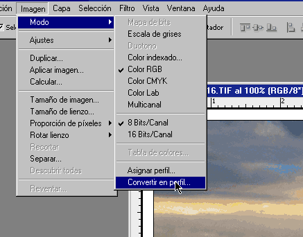 Después vais al menú Imagen>Modo>Convertir en perfil: