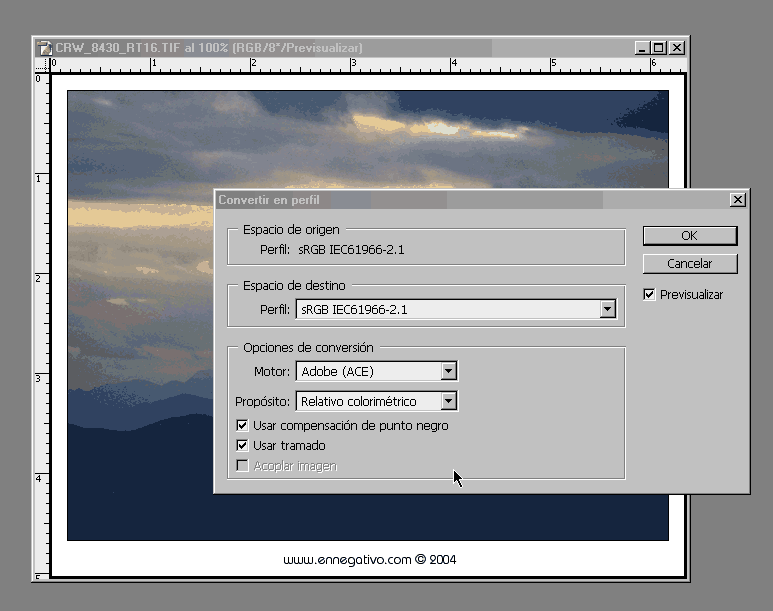 Un tutorial muy rápido para convertir una foto al perfil sRGB que es el estándar en esto del internet y además una acción de photoshop para que engraneis rápido el asunto.