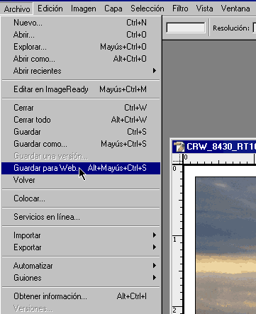 Este modo simulará el como veis la foto en el navegador, hacer los cambios que considereis oportunos y guardar para web.
