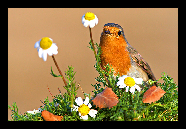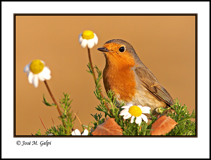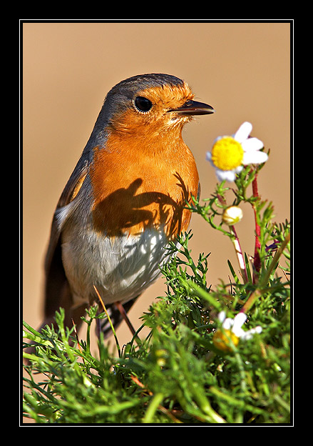 Unas margaritas y un poquito de césped, hay que jugar con estas cosas, cada cual que ponga lo que le gusta, también puede quedar bien sin nada, es decir el pájaro solo, pero a mí me parece muy soso.